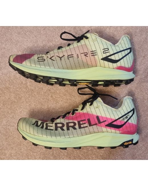 Mens running trainers Merrell MTL Skyfire 2 Uk 9 Lightweight Trail Running Trainers. Lightest and fastest trail running shoe. Made for trail and sky runners to excel on the most technical mountains and rugged trails in the world. A grippy, lightweight design and secure fit gives athletes more confidence on technical terrain and an advantage on shorter, steep trails. The MTL Skyfire 2 is built for elite-level performance on and off road. Was bought as gift but I'm more an 8 to 8.5 so a bit too big. Collection welcome from DN21 Kirton or DN15 Scunthorpe £85 in collection or ebay will add their fees if bought on here. Then you can try on before you buy to check size etc. Willing to post if required.