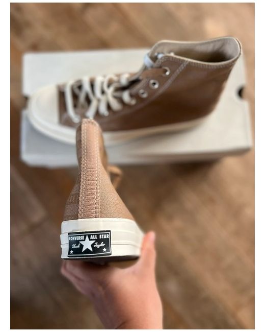 The KITH x Converse Chuck 70 High 'Tannin Monogram' in size 8.5 UK is a brand new, deadstock pair of sneakers that feature a high top shoe shaft style with a lace-up closure. The brown colourway adds a stylish touch to these classic Converse Chuck 70 sneakers, making them a must-have for any sneaker enthusiast. The collaboration with KITH brings a unique twist to the traditional Converse Chuck 70 model, making it a standout addition to any wardrobe.