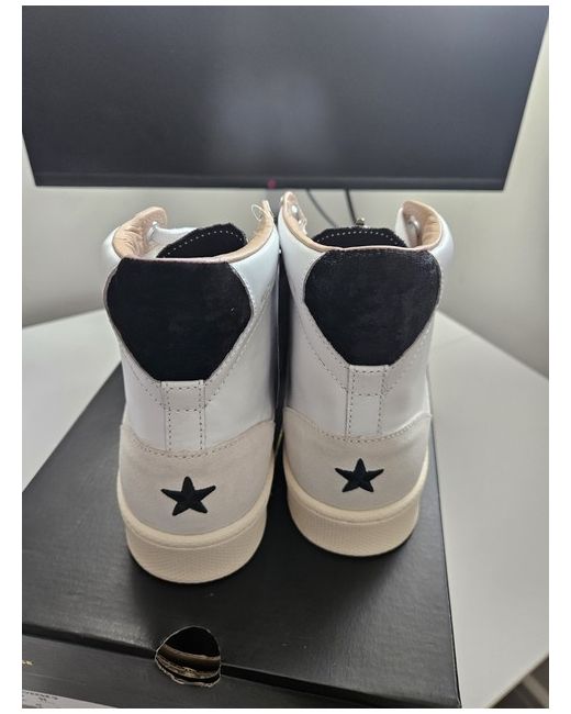 The Converse x IBN Jasper Pro Leather Mid Top Floating Stripe sneakers in men's UK size 9 feature a limited edition design with a floating stripe pattern in white. Made with leather outsole and upper material, these athletic shoes are perfect for both casual and activewear occasions. The mid-top style and standard shoe width provide comfort and support, while the zip closure adds convenience. With a nod to basketball performance and the Converse Pro Leather product line, these sneakers combine fashion and function for a stylish and versatile choice for any man.