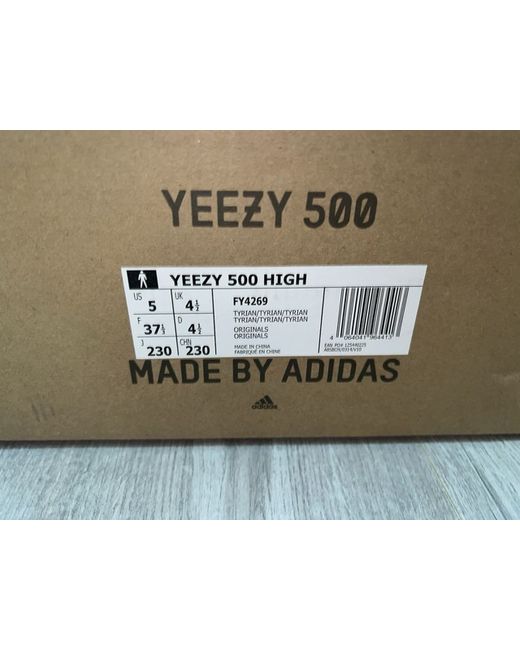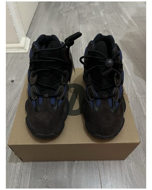 The Yeezy 500 High is a stylish black trainer with a high top shoe shaft style and lace-up closure, perfect for casual occasions. Designed by Yeezy in collaboration with adidas, this sneaker features a comfortable rubber outsole and suede upper material. Ideal for summer, these standard-width trainers are part of the Yeezy 500 product line, combining both fashion and comfort in one sleek design.