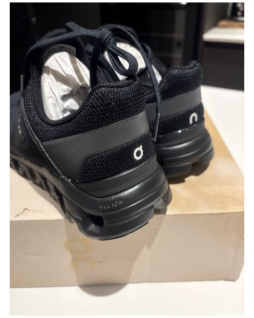 The On Cloudswift trainer in size 8 features a low top shaft style with a lace-up closure, suitable for men who prefer a standard shoe width. The black sneaker is designed for running and jogging activities, with a rubber outsole for durability and grip. It is part of the On Cloud product line and is customised to offer breathability, making it ideal for summer season workouts. With a sleek design and the signature style of the brand, the On Cloudswift trainer is a fashionable and functional choice for sports enthusiasts.