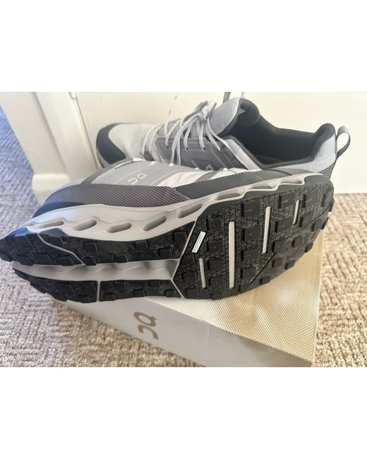 The On Running Cloud Horizon Waterproof Running Trainers in Grey, Size UK11, are a sleek and stylish choice for men who enjoy running in all weather conditions. These lace-up trainers feature a rubber outsole for maximum grip and a waterproof design, perfect for summer runs. With a focus on comfort and performance, these trainers from the On Cloud product line are a great addition to any sports enthusiast's wardrobe. Whether you're hitting the track for a casual jog or a more intense workout, these trainers will provide the support and style you need.