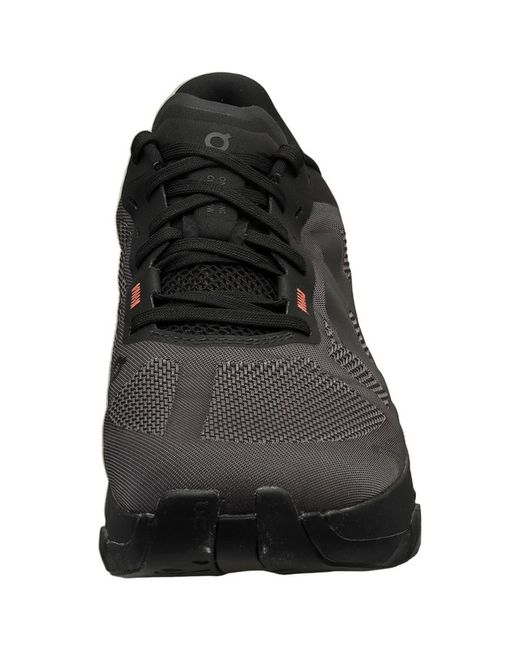 On Running Cloudflow 5. Experience effortless motion and striking design with these men's running trainers. Crafted from a breathable textile and durable synthetic blend, the Cloudflow 5 offers a sleek black aesthetic perfect for both performance and everyday wear. The interior boasts a comfortable textile lining and insole, cradling your foot with every stride, while the responsive rubber sole provides exceptional grip and cushioning. Secure your fit with classic lace-up fastening for a personalised feel. These trainers embody On's signature blend of innovation and style; a reliable partner for your running journey. Reference 3MF10111043.