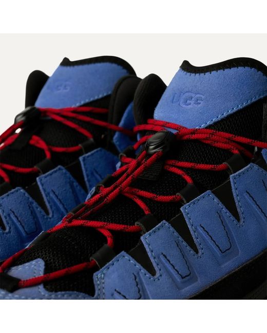 Embossed UGG tongue logo, UGG logo on Mudguard. Best for: Light or moderate rain. Pull toggle, Non-wicking laces made with 100% recycled polyester fibers. Rubber mudguard, Webbing heel pull made with 100% recycled nylon fibers.