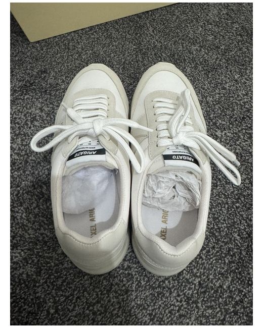 The Axel Arigato Genesis Vintage Runner in White/Cream, size UK 6, is a stylish and versatile sneaker perfect for casual occasions during the summer season. Made from high-quality leather with a rubber outsole, this lace-up trainer features a low-top shaft style and standard shoe width for all-day comfort. The unisex design and neutral colour scheme make it suitable for both men and women, while the brand's signature touch adds a touch of sophistication to the overall look. Made in Portugal, this sneaker combines timeless style with modern design, making it a must-have addition to any wardrobe.