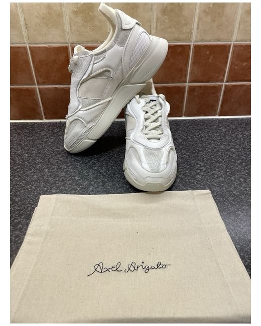 The Axel Arigato Maybe Genesis Runner is a stylish trainer featuring a lace-up closure and a standard shoe width. The white sneaker is designed for men and boasts a rubber outsole for added durability and comfort. With a UK shoe size of 9.5, this sleek sneaker from Axel Arigato is perfect for casual everyday wear.