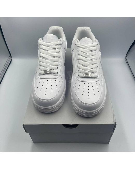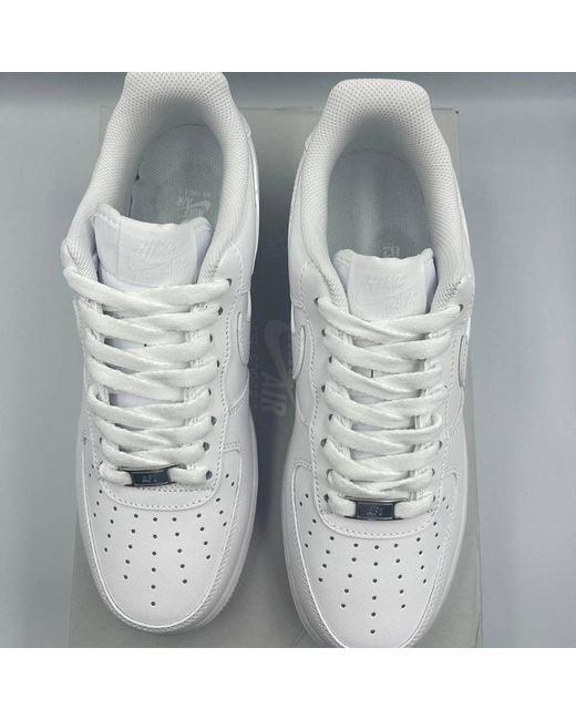 This product is a pair of men's white trainers from the Air Force brand, specifically designed as sneakers. The UK shoe size is 8, making it suitable for a variety of men's foot sizes. The trainers feature a classic white colour and belong to the Nike Trainer product line, known for their quality and style. Overall, these men's white trainers are a versatile and stylish footwear option for everyday wear.
