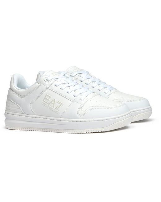 These EA7 Training sneakers bring athletic sophistication to your everyday rotation. Built with a synthetic upper and durable rubber sole, they're designed to move from casual outings to light workouts with ease. The iconic eagle branding makes a statement, while thoughtful details like the padded heel counter and heel loop ensure comfort and convenience. Clean white colorway keeps them versatile for any wardrobe.