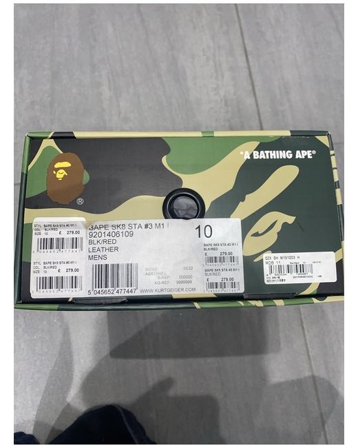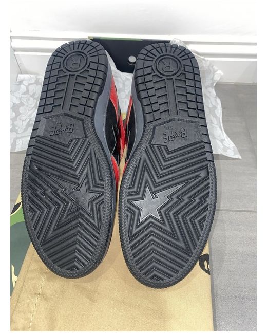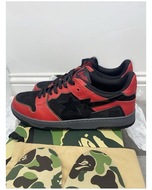 Bathing ape Sk8 Sta, black and red leather & suede. Brand new in box, Uk 10 tried on for size on carpet and put into storage. Comes with dust bag & camo insoles.