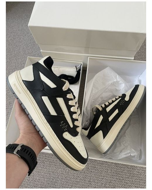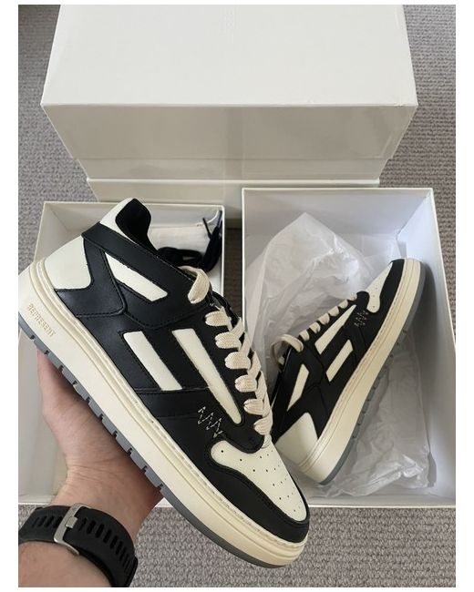 The Represent Reptor Low Trainers Sneakers in Black/Vintage White are a stylish and versatile addition to any man's footwear collection. Made from high-quality leather with a low-top design, these sneakers from Represent Clo are perfect for everyday wear. The classic black colour and vintage white accents add a touch of sophistication to any outfit, making them a must-have for the modern man. Crafted in Portugal, these trainers offer both style and quality in a sleek and timeless design.