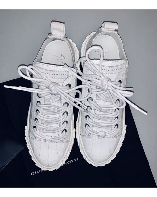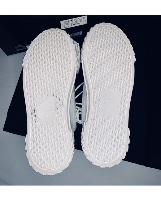 ,These Giuseppe Zanotti Blabber trainers are a stylish option for both men and women. Made in Italy, they feature a white leather upper with a sleek sneaker style. With a UK Shoe Size of 4 , these unisex adults' trainers offer a comfortable and fashion-forward choice for daily wear.