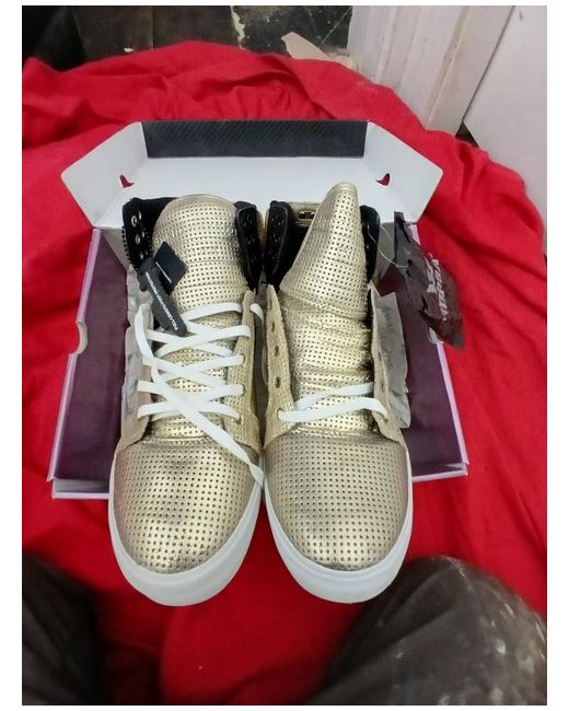 a very very rare shoe to find unworn and in new condition.the box has a few scuffs on it,but its nearly 20 years old.comes with laces and tags,a true old school original supra pair