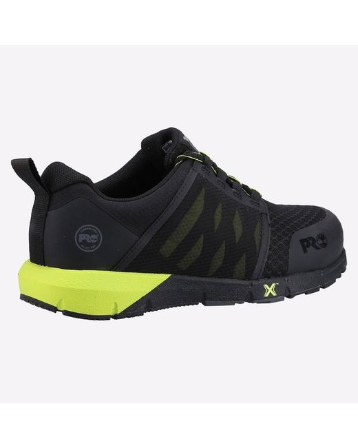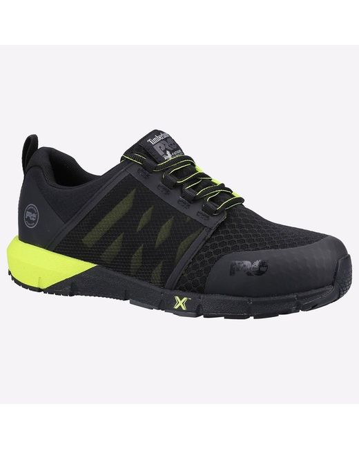 Designed with a lightweight HoverSpring foam midsole for industry-leading underfoot comfort, flexibility, and durability, the Timberland Pro Radius men's work shoes also feature an abrasion-resistant mesh upper and anatomically positioned flex grooves. - ReBOTL breathable, durable mesh upper - Abrasion-resistant reinforcements - Asymmetrical alloy safety toe - Metal and mutilation free - Timberland PRO Flex Technology� - Fuel and oil-resistant HoverSpring foam midsole - Anti-Fatigue Technology footbed for shock absorption and energy return - Heat-, slip-, oil-, and abrasion-resistant, non-marking rubber outsoles.