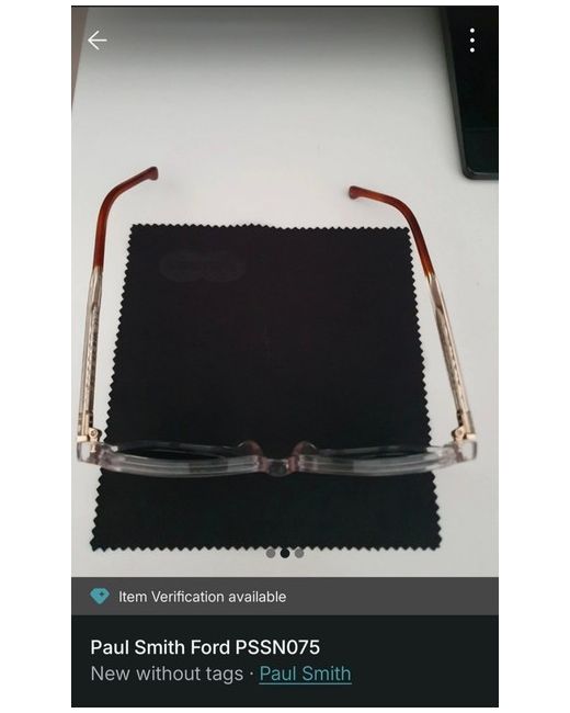 Paul Smith Ford sunglasses with translucent clear front frames and tortoiseshell brown arm butts. On the inside the arms are marked Paul Smith Ford on one arm along with PSSN075 04 and size 56-16 145 made in Italy CE on the other. The lenses are green while I would describe these as a large size arm length. rrp £240.00 As for the cosmetic condition these sunglasses are in excellent condition. Worn once. Too big for my face features. No original case included .