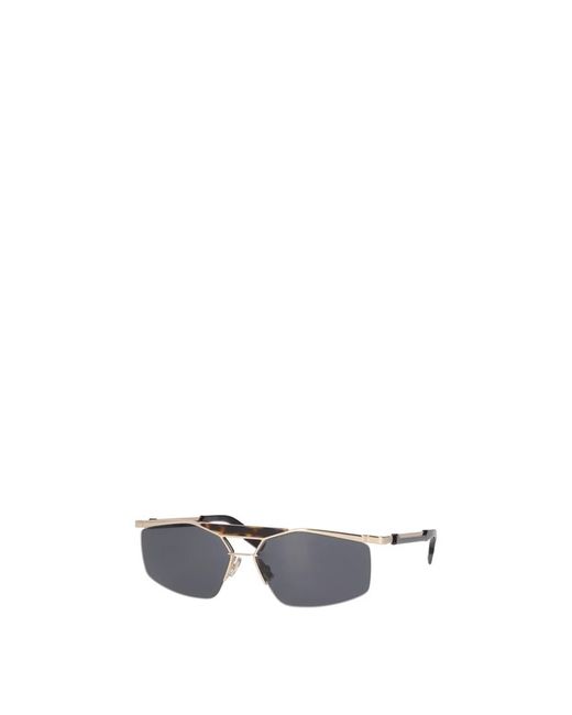 Men's Black Futuristic Rectangular-Frame Sunglasses Gold OS RRP 405