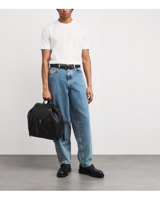No stranger when it comes to fine leather goods, Emporio Armani lends its sophisticated eye towards this backpack. Crafted from pebbled calfskin, this piece provides spacious offerings for your belongings, promising to grow more supple with each wear.