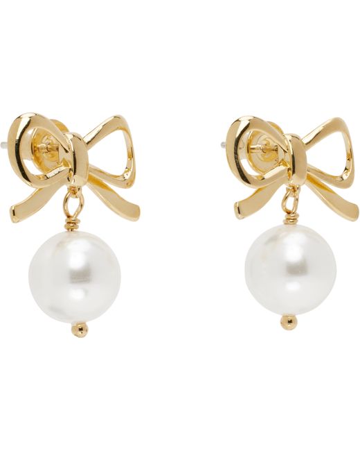 Pair of drop earrings in 14k gold-plated brass. · Bow-shaped with faux-pearl pendant · Post-stud fastening · H1 x W0.75 Supplier color: Gold