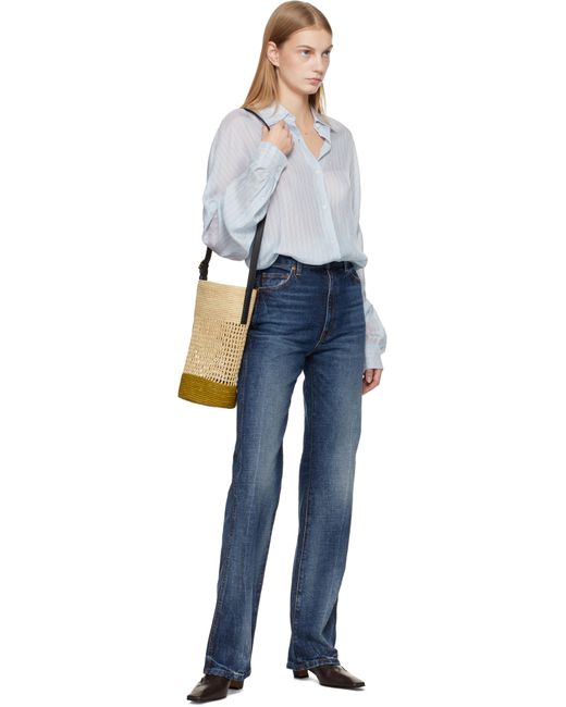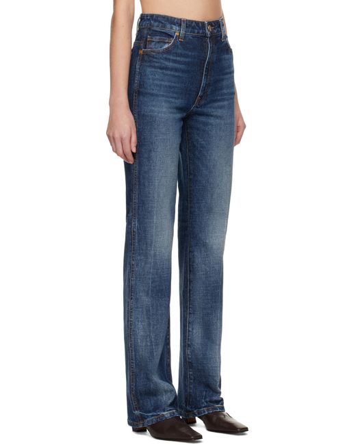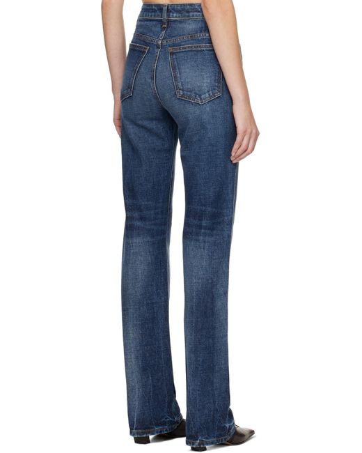 Hand-finished stretch denim jeans. · Fading and whiskering throughout · High-rise · Belt loops · Five-pocket styling · Zip fly · Contrast stitching in tan Supplier color: Lykens