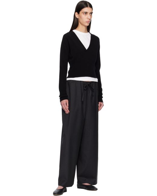 Lightweight wool canvas trousers. · Straight-leg, loose-fit · Drawstring at elasticized waistband · Two-pocket styling Supplier color: Charcoal Melange