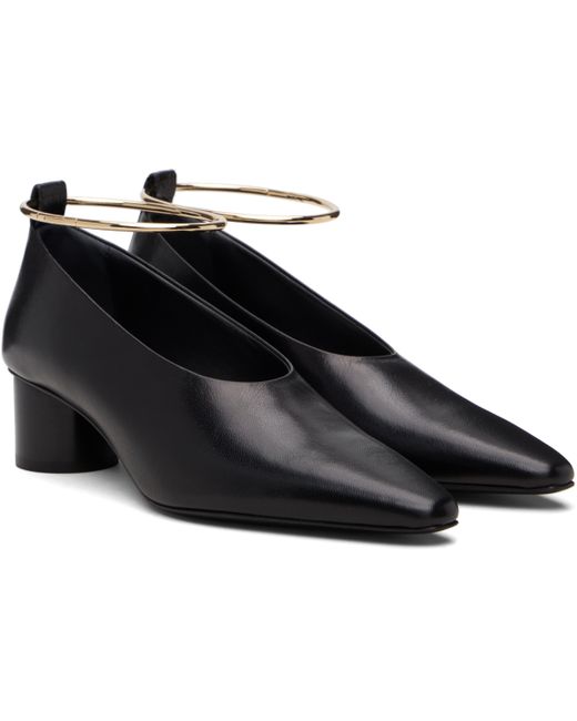 Buffed calfskin heels. · Pointed square toe · Hinged metal ankle cuff · Nappa leather lining · Stacked cylindrical heel with rubber injection · Calfskin sole · Heel: H1.75 Supplier color: Black