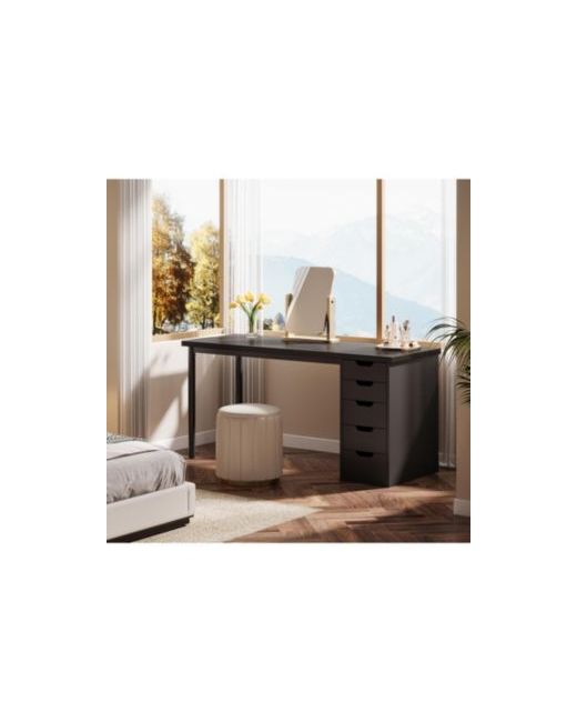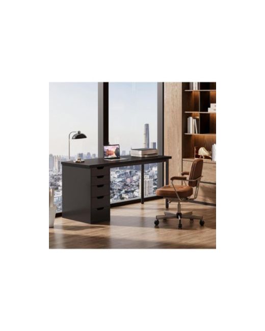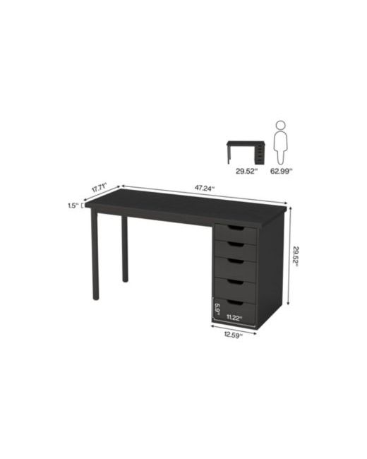 This modern computer desk is equipped with 5 deep, reversible drawers, offering plentiful and customizable storage. Organize all your work essentials, books, and tech accessories to suit your needs.