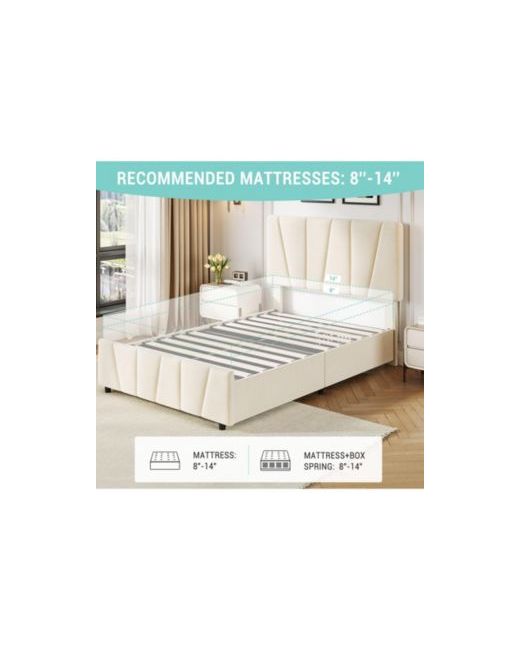 Beige Bed Frame with Adjustable Headboard and 2 Storage Drawers Khaki