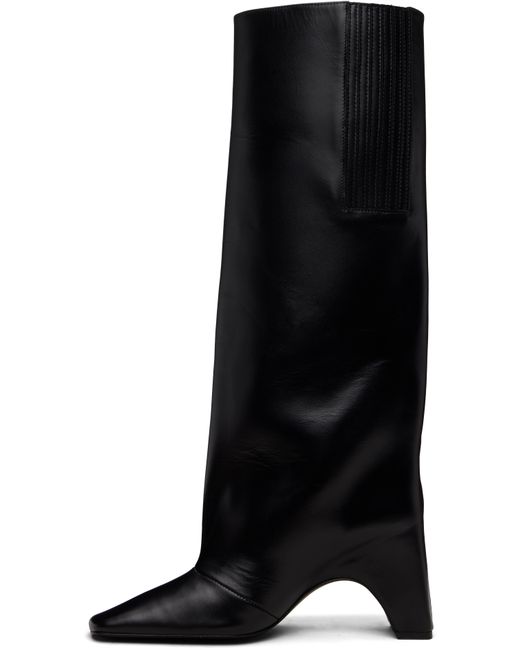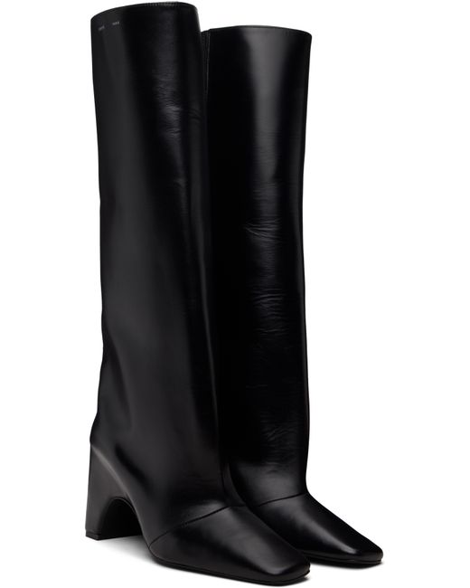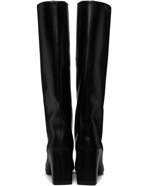Knee-high buffed leather slip-on boots. · Square toe · Logo printed at outer collar · Concealed elasticized gusset at inner side · Buffed leather lining · Block heel with rubber injection · Leather sole · Heel: H4 Supplier color: Black