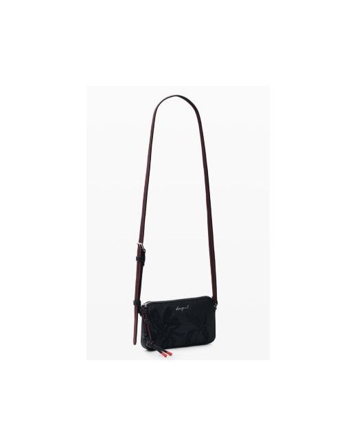 Large wallet with extendable strap to wear as a crossbody bag, engraved flower details and metallic logo applique.