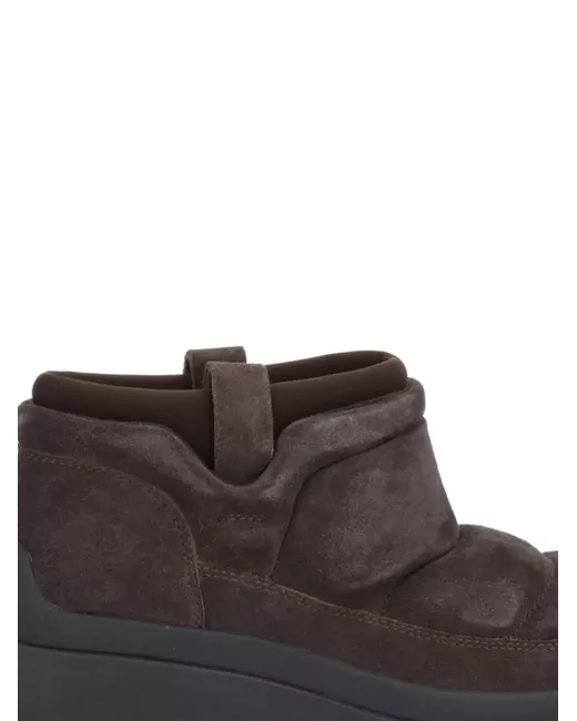 brown padded design platform sole pull-tab at the opening ridged sole round toe