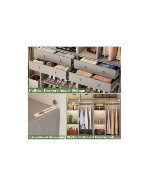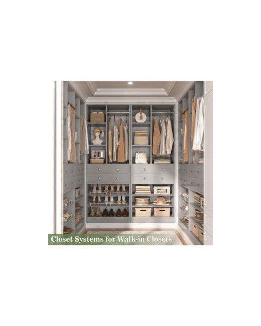 This freestanding multi-functional closet storage system is designed for small spaces, featuring two large-capacity wooden drawers, one hanging rod, and adjustable shelves. Its standout feature is the three-tiered storage rack at the bottom with adjustable tilt angles, serving as both a shoe rack and storage shelf for versatile organization. If you're renovating a new walk-in closet or looking to expand your existing wardrobe, this 28'' wide small closet system is an excellent choice.