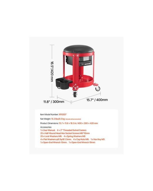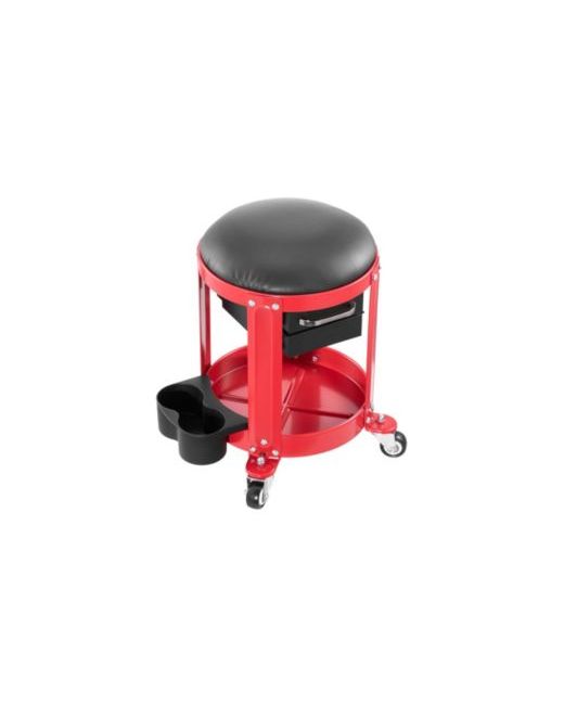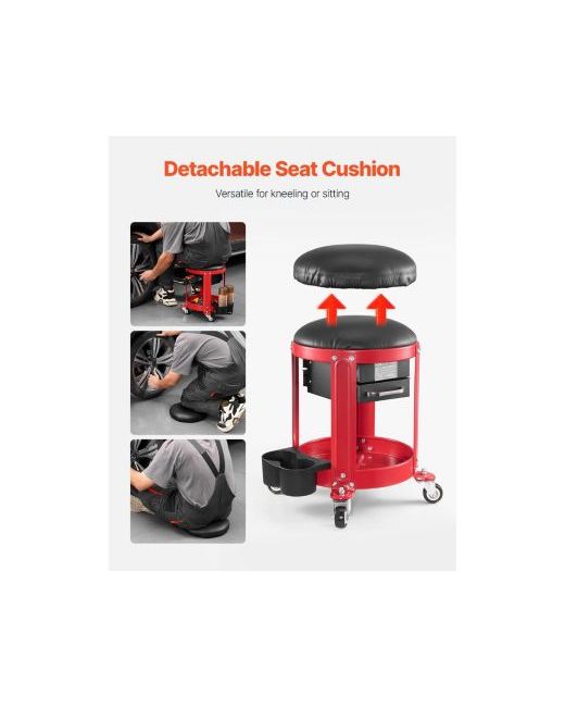 Upgrade your garage comfort and efficiency with this rolling mechanic stool, built for long days under the hood or around the house. The large, soft pearl cotton cushion is wrapped in waterproof, oil-resistant Pu leather that wipes clean in seconds, making it perfect for messy jobs indoors or out. Four large 360 casters glide smoothly over uneven surfaces, while anti-loosening nuts keep them securely in place. The detachable cushion doubles as a kneeling pad, seat cushion, or backrest for versatile use. A heavy-duty carbon steel frame supports up to 300 lbs with a stable center of gravity to prevent tipping. Two drawers, a tool tray, and dual can holders keep your tools, sprays, and drinks organized and always within reach.