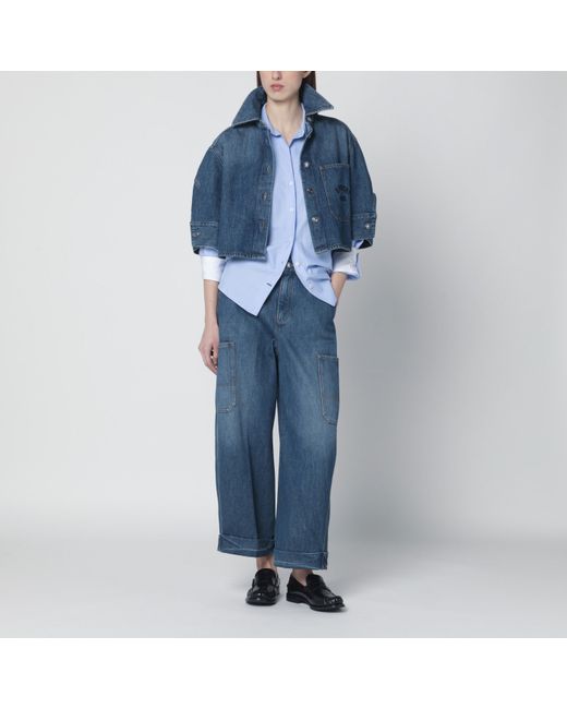 Givenchy medium-blue cotton denim jeans with a lightly washed effect, featuring a cropped leg, front zip and button closure, adjustable waist with buttons, belt loops, three front pockets, two side pockets and two back pockets, one with embroidered logo lettering.