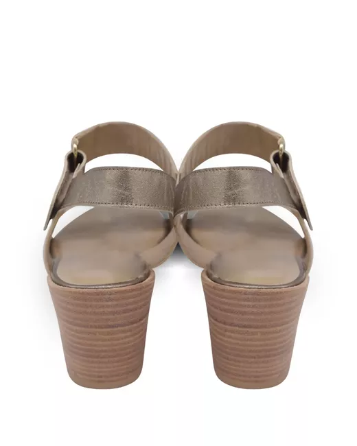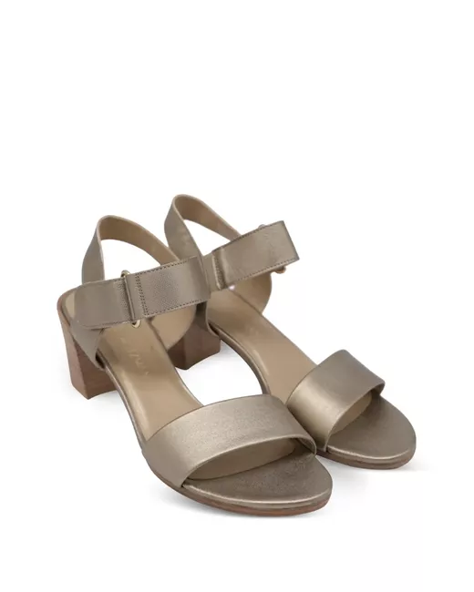 gold-tone leather ankle strap block heel Condition: EXCELLENT. This previously owned item is in near-perfect condition with no signs of damage or use. Your purchase will arrive to you in its original packaging.