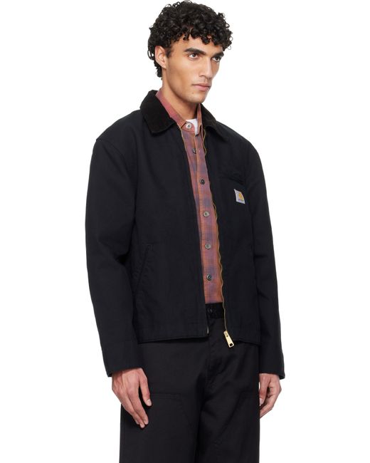 Heavyweight organic cotton Dearborn canvas jacket. · Corduroy trim at spread collar · Zip closure · Zip pocket and logo patch at chest · Welt pockets at waist · Adjustable press-stud barrel cuffs · Adjustable press-stud tabs at back hem · Unlined · Logo-engraved gold-tone hardware Supplier color: Black