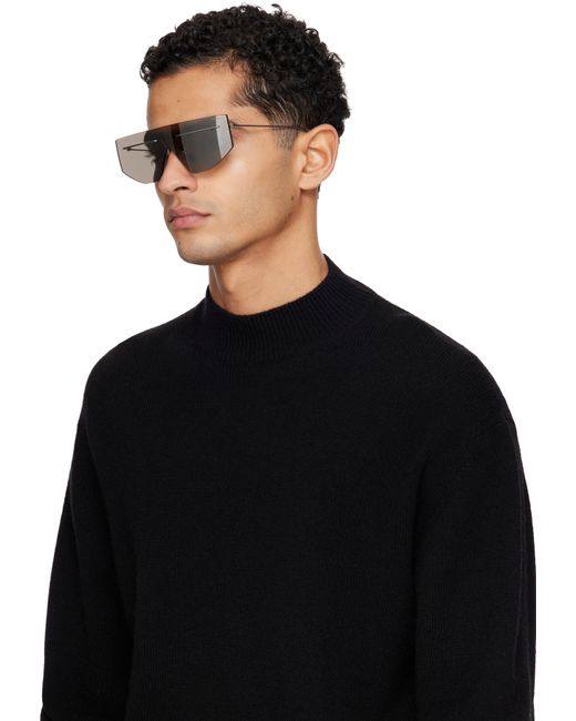 Shield-style rimless metal-frame sunglasses. · Logo etched at silver-tone lens · Adjustable rubber nose pads · Logo stamp at temple tips · Includes satin pouch and case · Size: 145 Supplier color: Silver