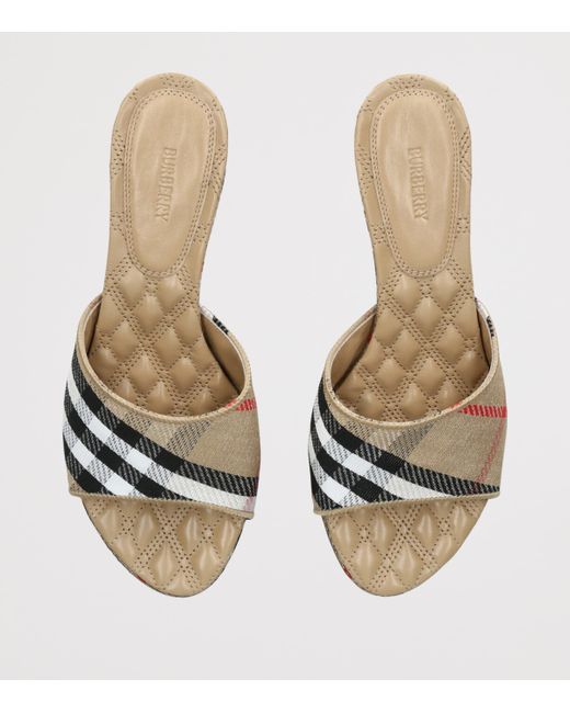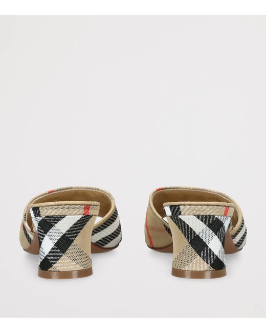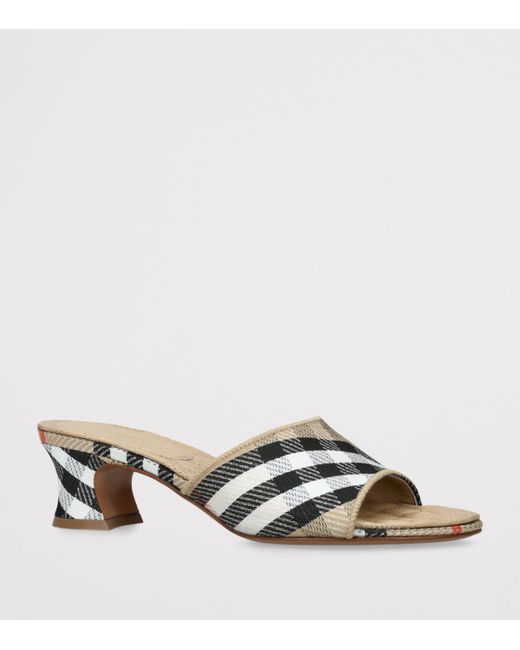 Inspired by the tartan first used by Scottish clans and then employed to line the brand's raincoats in the 1920s, Burberry's famous check print is a British icon. Here, the signature pattern cloaks the Sloane mules, an open-toe style set on a leather block heel.