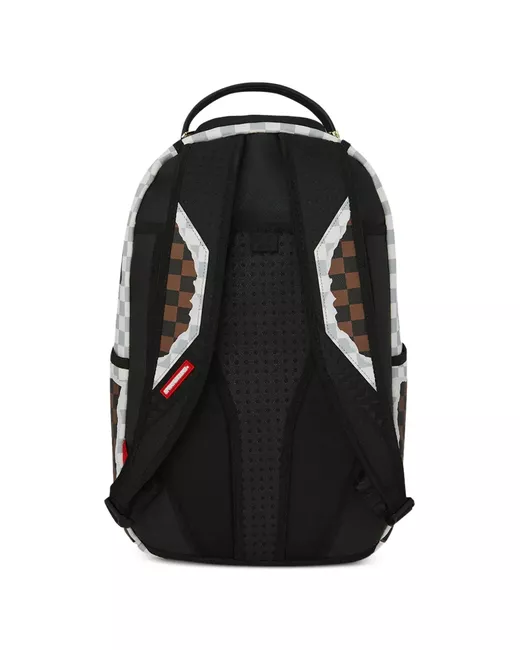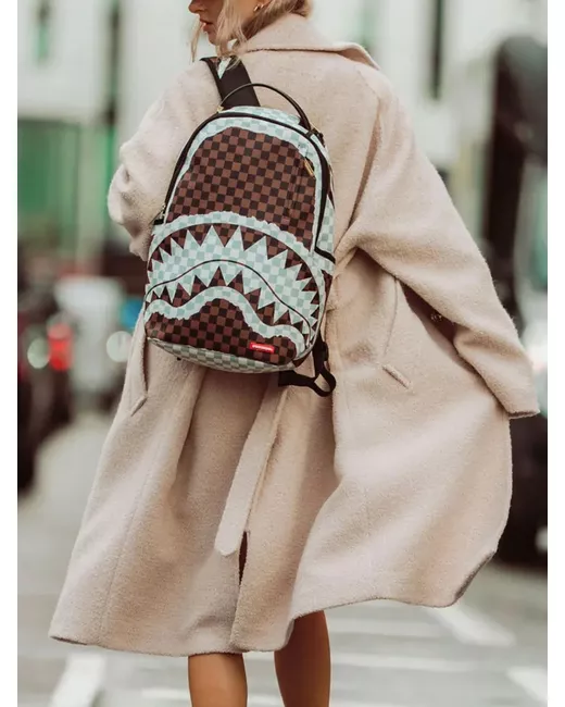 Men's Brown checked shark-motif backpack