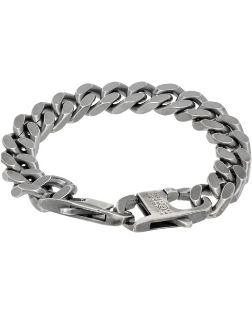 Curb-chain bracelet in antiqued silver-tone brass. Engraved logo and hallmarking at adjustable two-way lobster clasp. Supplier color: Brunito