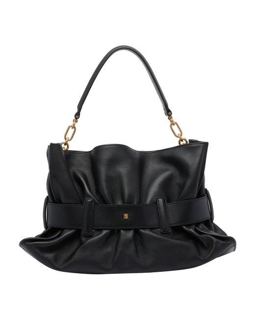 Balmain Ladies Shoulder Bag. SKU: KK990LSAX0PA. Color: Black. Size: 24x44x14 cm. Balmain Medium Anthem Handbag. Balmain black Medium Anthem handbag, magnetic closure, inner clip closure, 1 slot, shoulder strap, leather model. Composition: 100% Calf Leather