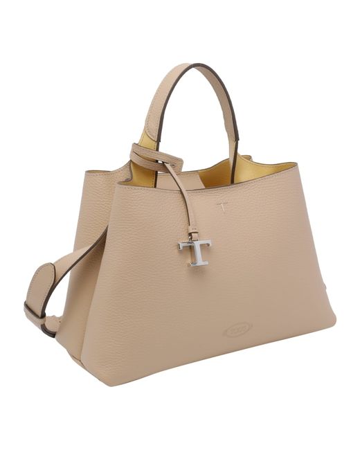 Tods Ladies Tote. SKU: XBWAPAJ0200QRI4L63. Color: Beige. Size: 21x31x13 cm. TodS Small Leather Handbag. Tod's beige Small leather handbag, hook closure, 2 sections, 2 zipped pockts, adaptable strap, frontal T charm logo. Composition: 100% Calf Leather