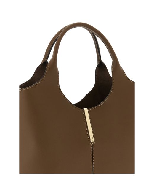 Tods Ladies Tote. SKU: XBWEBRF0200UBLS818. Color: Brown. Size: W 25.5 x H 25 x D 11 cm. TodS Ebr Small Handbag. Small 'EBR' leather handbag, double handle, metal details, snap hook closure, adjustable and removable shoulder strap.. Composition: 100% calfskin leather (Bos Taurus)
