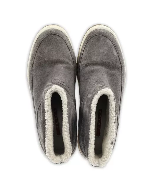 grey suede ankle-length platform sole Condition: EXCELLENT. This previously owned item is in near-perfect condition with no signs of damage or use.