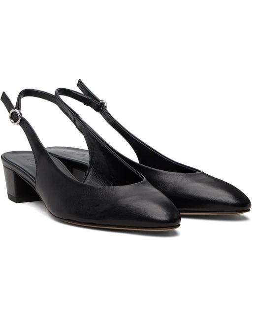 Buffed leather heels. · Pointed toe · Pin-buckle slingback strap · Covered block heel with rubber injection · Leather sole · Heel: H1.25 Supplier color: Black