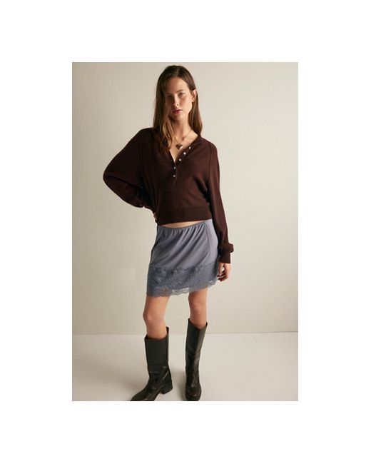 A silky base is adorned with a stunning lace overlay and vintage-style zig-zag seams on this mini slip from Intimately. **Fit:** Mini length, A-line, mid-rise **Features:** Silky fabrication, elastic waistband, lace overlay at hem, zig-zag seams **Why We ❤ It:** An absolutely versatile styling piece. Party Crashers Half Slip by Intimately at Free People in Liquid Silver, Size: XS