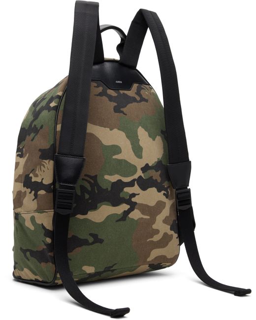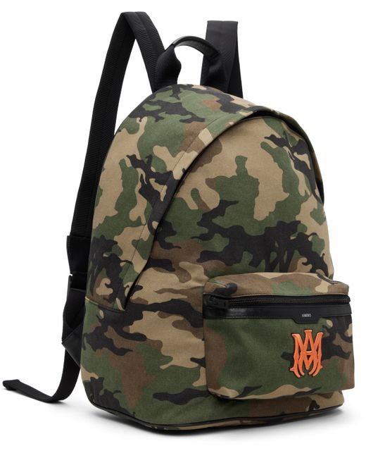 Cotton twill backpack. · Camouflage pattern printed throughout · Rolled carry handle · Adjustable padded shoulder straps · Zip pocket and embroidered logo at face · Logo stamp at face and back face · Two-way zip closure · Zip pocket and laptop compartment at interior · H16.5 x W12.5 x D8.5 Supplier color: Camo