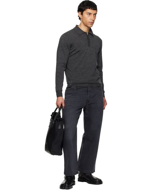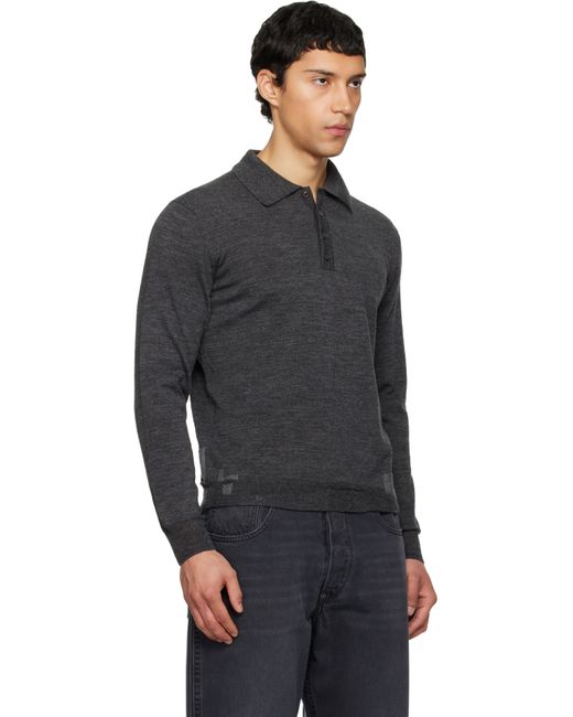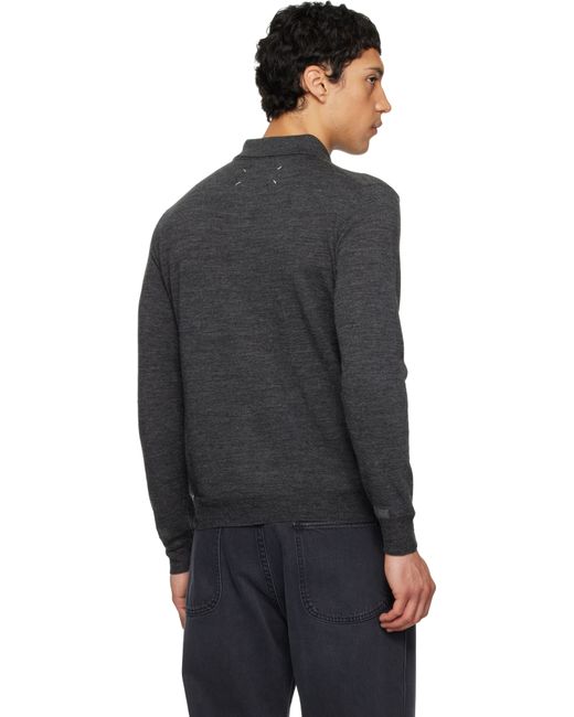 Lightweight knit wool-blend polo. · Patchwork detailing at front hem · Rib-knit spread collar and cuffs · Four-button placket · White stitches at back collar Supplier color: Medium Grey