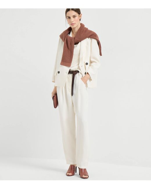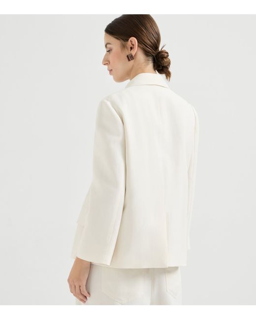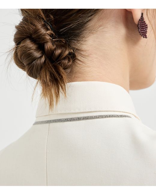 Driven by fine materials and impeccable craftsmanship, Brunello Cucinelli has delivered elegant silhouettes since 1978. Cut from linen-infused twill, this blazer is rendered with an easy sophistication, as exemplified by its lightweight structure and subtle monili beading along the collar.