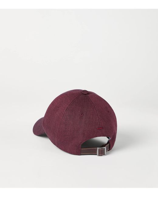 Brunello Cucinelli elevates daily dressing with this baseball cap, crafted from a breathable virgin wool-linen blend and adorned with a chevron weave for a refined, comfortable finish. Sitting front and centre, the embroidered logo offsets a reinforced brim to combine heritage with functionality, paying homage to the hamlet of Solomeo where it is made.