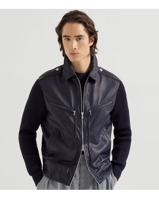 A leather jacket is often considered a cornerstone of a curated wardrobe, so it's no surprise that Italian atelier Brunello Cucinelli is celebrated for its masterful interpretation of the style. This iteration is designed to transcend seasons, combining timeless appeal with modern comfort. Crafted from supple nappa leather and enhanced with plush padding, it features knitted sleeves that lend lightness and softness, creating a velvety texture that feels as luxurious as it looks.