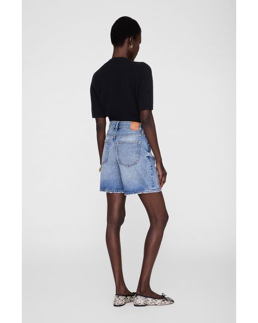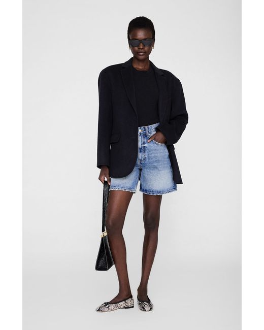 The Heath Short features a baggy, boyfriend-inspired fit constructed from midweight 100% regenerative cotton denim without stretch in a vintage-inspired medium indigo wash. - Regenerative cotton - High rise - Zip-front closure - Baggy fit - Clean-edge hem ANINE BING Heath Shorts in Caspian Blue